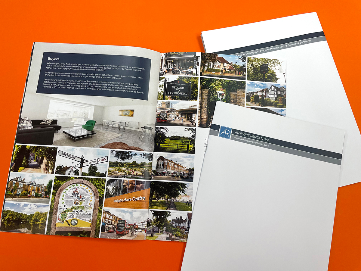 This client ‘s requirements were to have a folder, promotional brochure and stationery designed and printed. Following a consultation and given the design brief, a couple of draft spreads were approved and artworked using their corporate identity and house style. A heavier matt laminated presentation folder with glued pocket and business card slots held the brochure and marketing material.